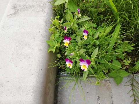 歩道の植え込みにどう見ても園芸種っぽい花が咲いていた。