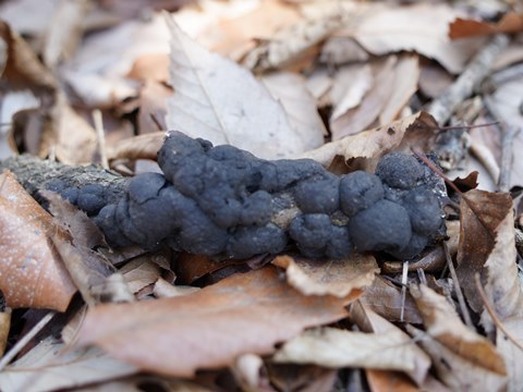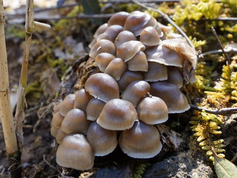 東京では真冬でも見られるキノコであり、落ちている木の枝に密集して生えていることが多い。