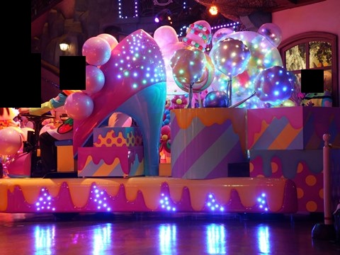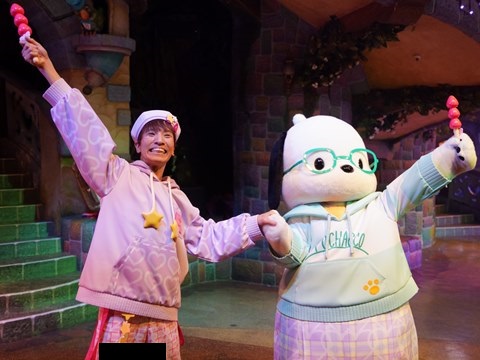 知恵の木ステージでも早番だと、メルヘンシアターのキャラクター、ダンサーさん、フロートの出発を観ることができる。