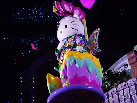 視界が狭いだけにキャラクターの姿が見えた時の感動が大きいようで、クロミちゃんを先頭にフロートに乗ったキャラクターが視界に現れると観客からどよめきが上がり、不思議な一体感を覚える。