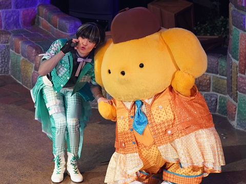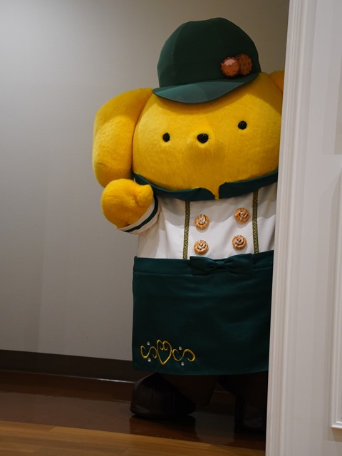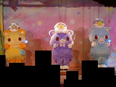 デザートを食べ終わり、ウーロン茶を飲んでくつろいでいると、ステージにプリンくんが出てきた。