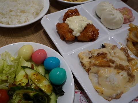 今日初めて知ったのだが、サラダのコーナーにあるカラフルなウズラのゆで卵も推し活ピューロランド限定のメニューらしい。
