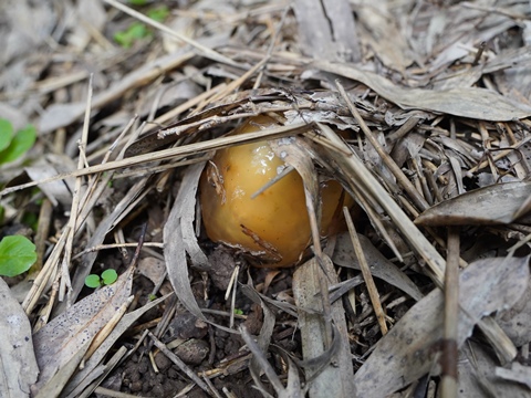 今年の6月に来た時にキヌガサタケを複数見つけたポイントでは幼菌が一つだけ見つかった。