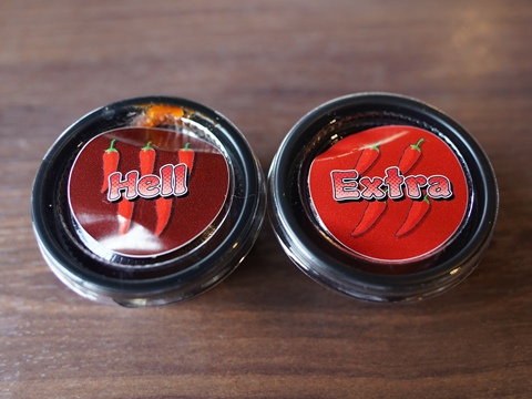 特設ブースから5段階の辛さの調味料を自由に取ってトッピングすることができる。