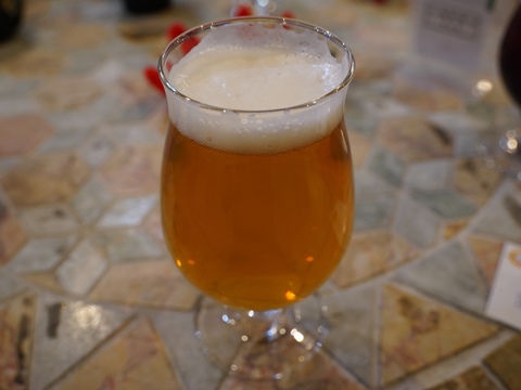 受付ではノンアルコールのブドウジュースを頼んだが、たまには気まぐれにアルコールを入れてみようと思い、「オリジンズ ゴールデンエール」というビールを追加で注文した。