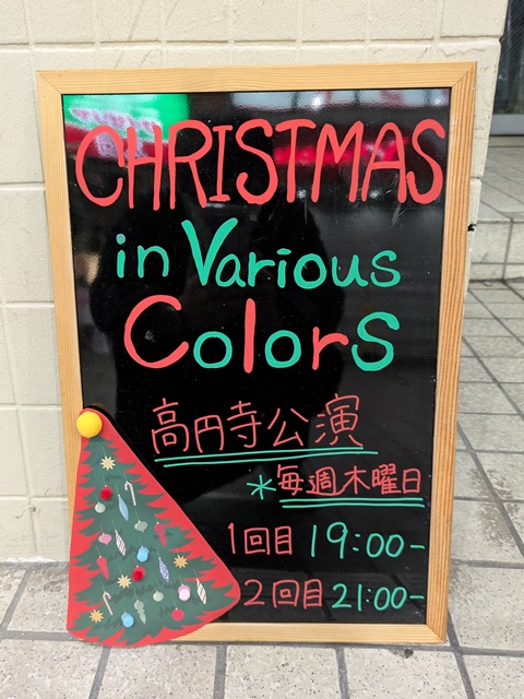 今日はJR高円寺駅から徒歩約5分くらいのところにある「TheaterCafe&Dining Proscenium」というお店に『CHRISTMAS in Various Colors』というショーを観に行った。