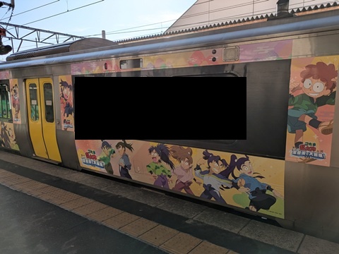 常陸太田行の列車に『忍たま乱太郎』という、忍者を育成するための学校を舞台としたアニメのラッピングがされていた。