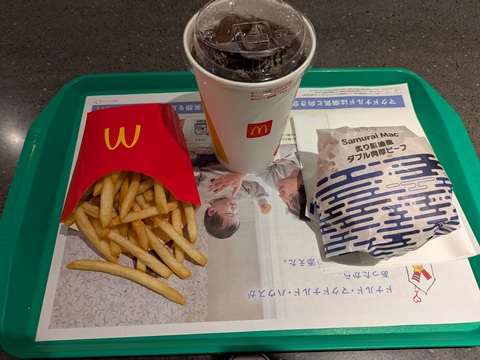 東京に戻る特急の時間まで30分ほどあったので、水戸駅のマクドナルドで遅めの昼食。