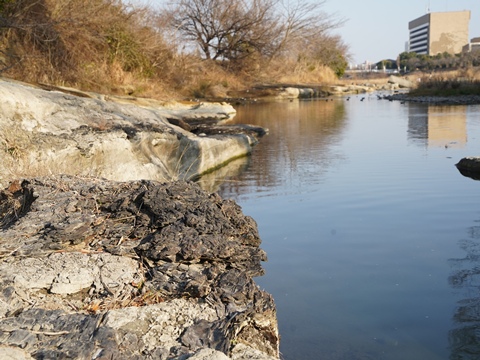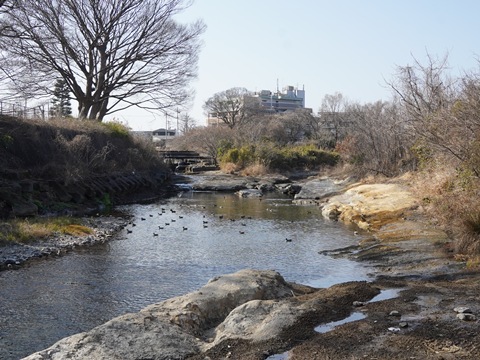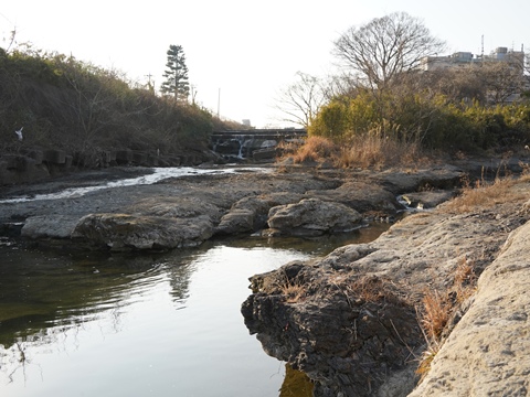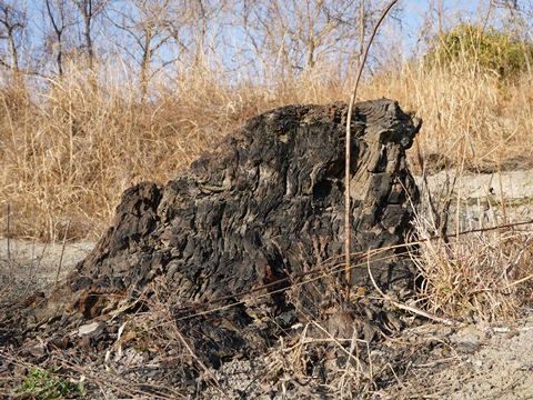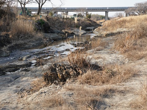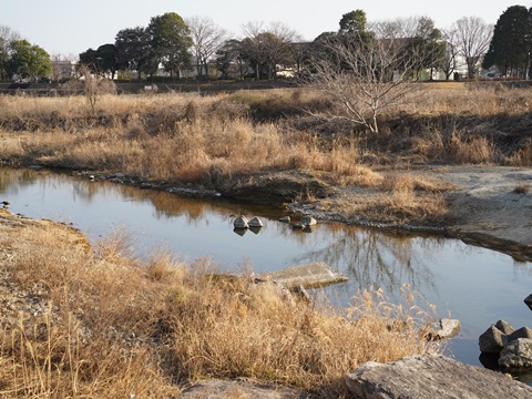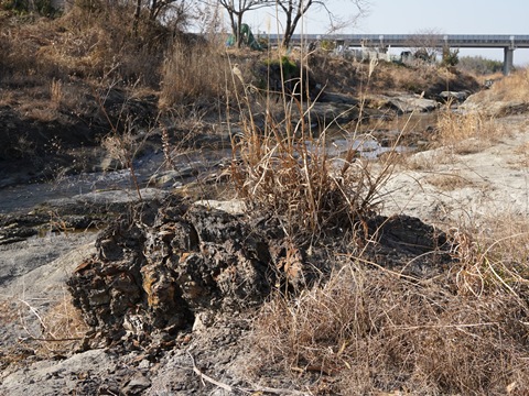 そこからグラウンドに入って河川敷に降り、上流の方に歩いていくとメタセコイア化石林がある。