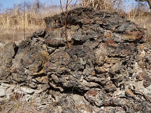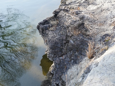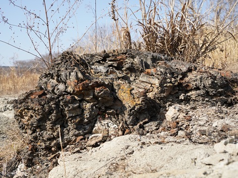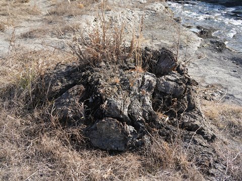 化石とはいえ完全に石にはなりきっていないので、露出したところから風化がどんどん進んでいる。