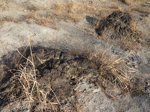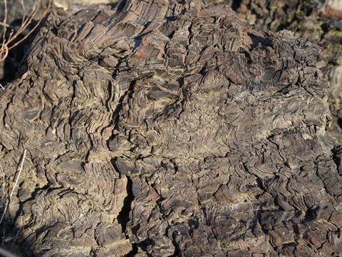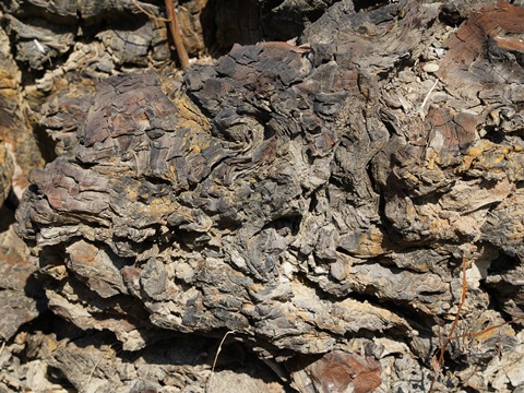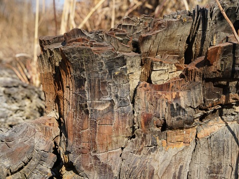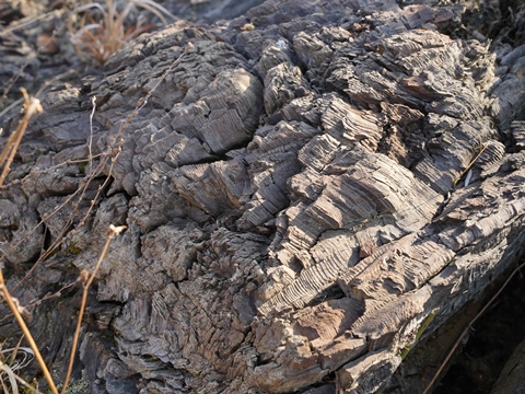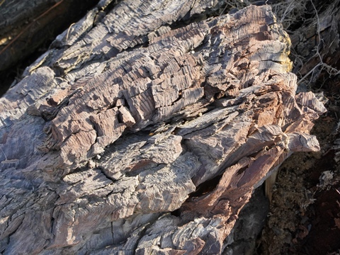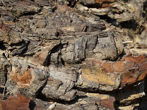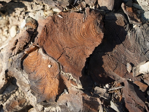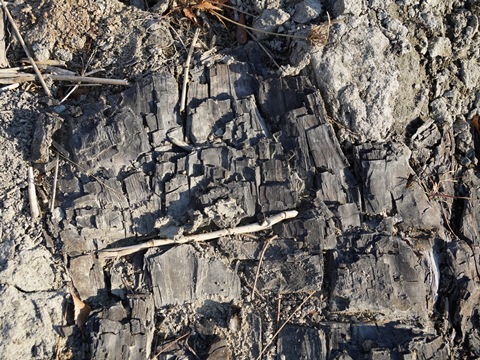 地層のあちこちから木の破片がたくさん顔を覗かせている。