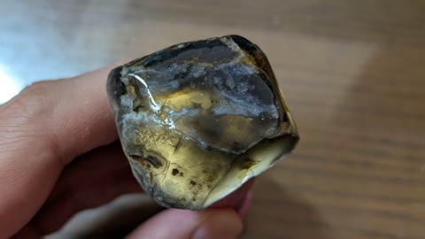 今日は夜に磯崎海岸で拾った黒い玉髄を磨いた。