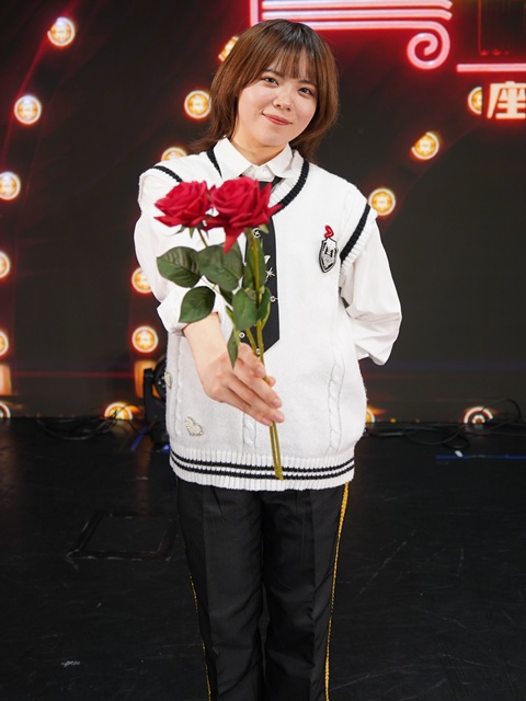 gomaさんに赤色のアンコールローズ(1000円/本)を2本渡して写真を撮らせてもらった。