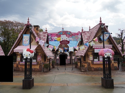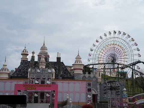 キティキャッスルとその背後にある観覧車の景色を見ると、遊園地に来たんだなという気持ちにさせられる。