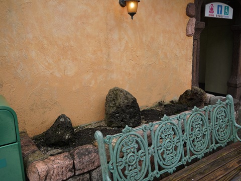 インフォメーションの近くのトイレの前に石が並べてあった。