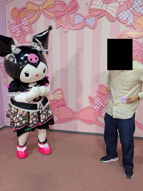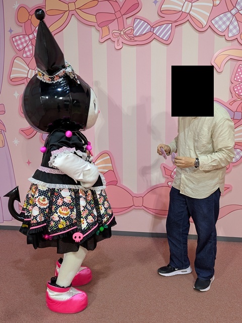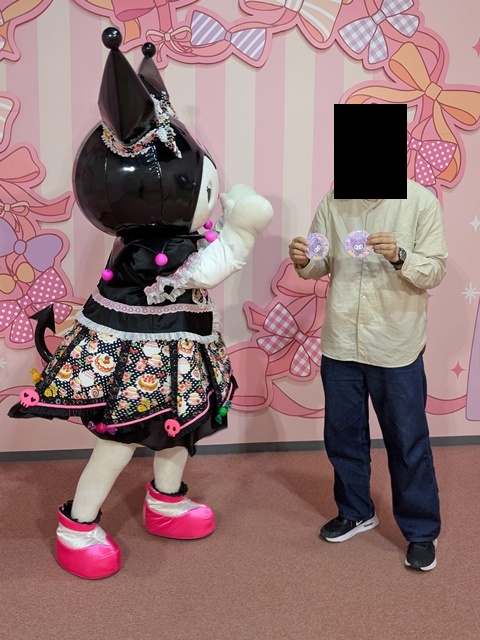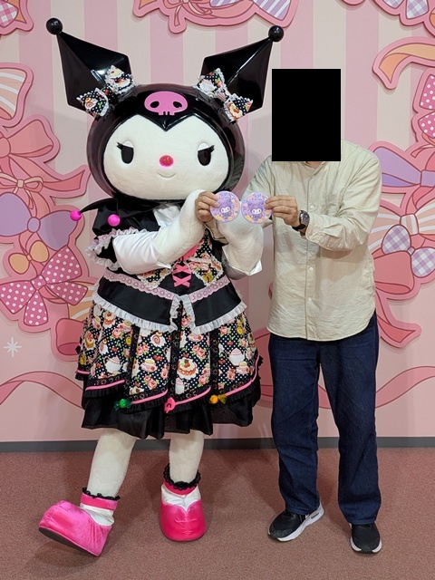 せっかくなので2回目は缶バッジを身に着けてクロミちゃんとツーショットを撮りたかったが、着ているシャツが缶バッジを付けるのに適した素材ではなかった。