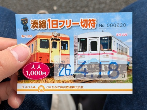 ひたち海浜公園には行かないので、普通の1日フリー切符を購入したが、通常1000円のところ700円で買えた。