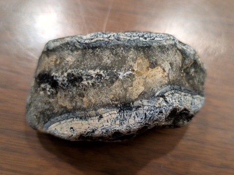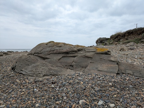 磯崎海岸ではマーブル模様のある茶色い砂岩を中心に拾っていたが、黒い玉髄や黒メノウも探していたところ、一個だけそれらしきものを見つけたので持ち帰ってきた。
