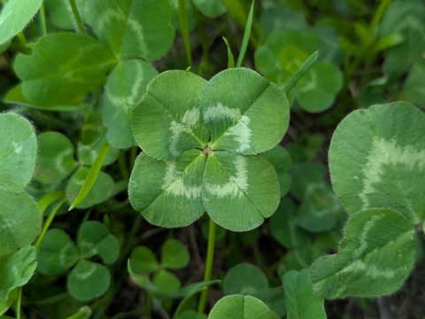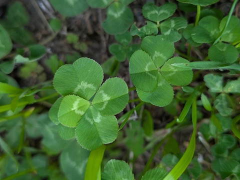 でも、土手の斜面のシロツメクサの群生で四つ葉のクローバーがたくさん見つかった。