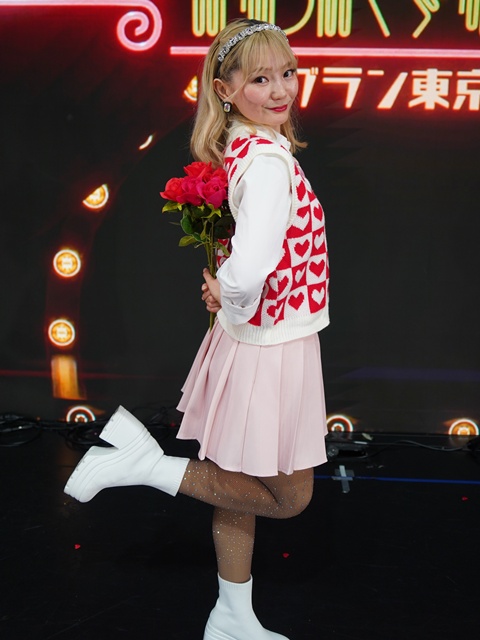 アンコールローズ2本をりっちゃんに渡して写真を撮らせてもらった。