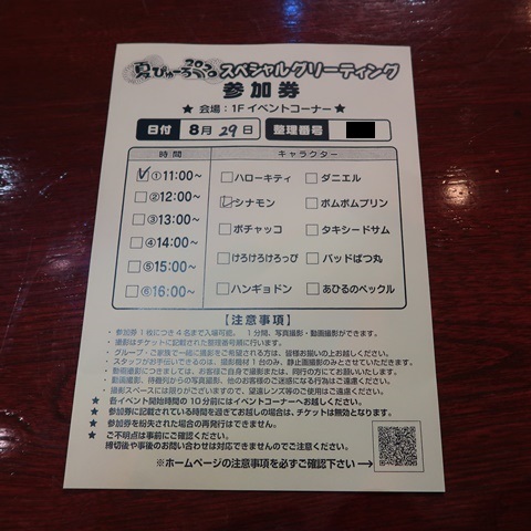 その後、レディキティハウスに行き、モカちゃんの公開グリの整理券を手に入れた。