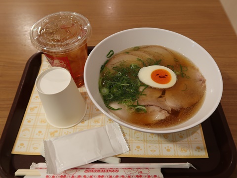 15時近くになったが、何も食べていなかったのを思い出し、取引を待ちがてら、1Fのキャラクターフードコートでぐでたまのラーメンを食べた。