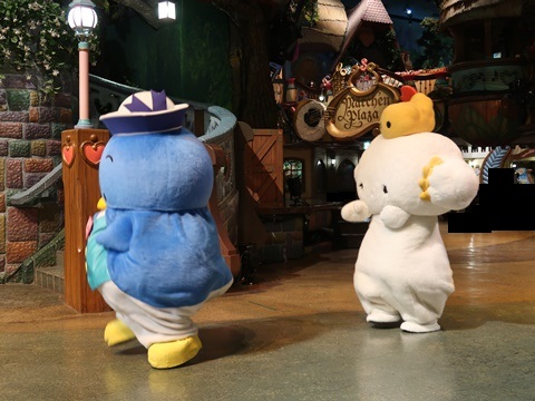 今日の前座のキャラクターはこぎみゅんとタキシードサム。