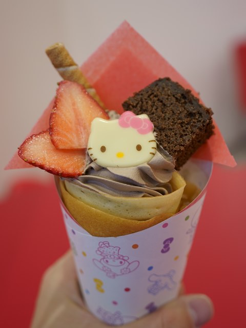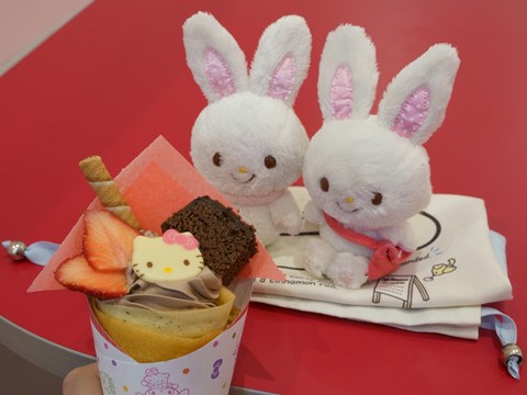 しかし、カフェが混雑していたので、サンリオレインボーワールドレストランでクレープを食べることにした。